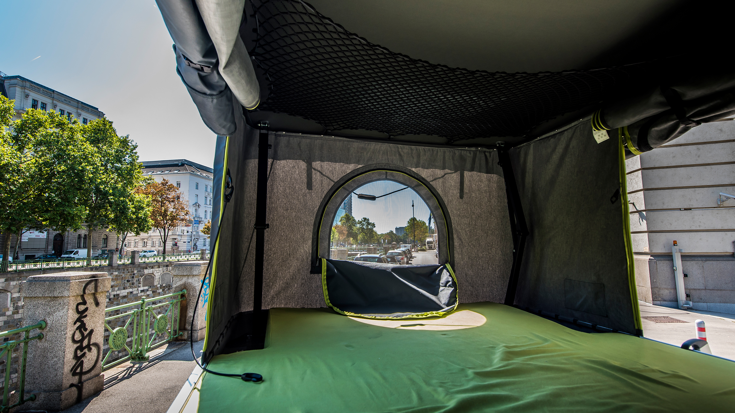 Kann ich für einen Powernap das Dachzelt in der Kurzparkzone aufstellen? Kann ich mir dank des Dachzelts das WG-Zimmer sparen und trotzdem in der Stadt wohnen?