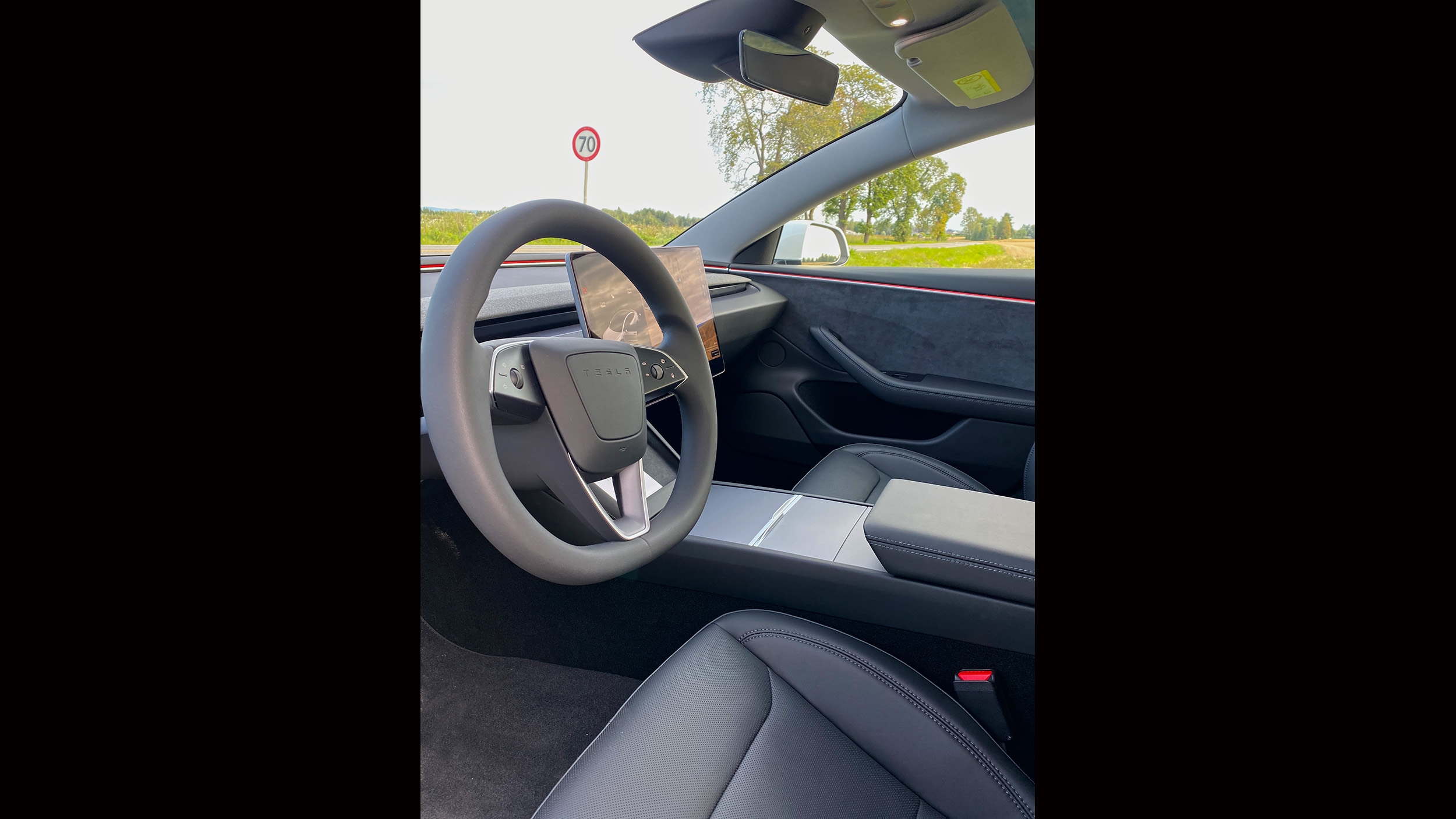 Besonders gewöhnungsbedürftig ist wohl zunächst der Wegfall des Blinkerhebels. Beim neuen Model 3 wird bei einem Richtungswechsel mit dem linken Daumen auf eine Links- bzw. rechtstaste gedrückt. Die richtige Taste in einem Kreisverkehr sofort zu finden, ist nicht ganz einfach. Doch schon nach wenigen Versuchen klappt das richtige Timing fast automatisch. Ob es nach vor oder zurück gehen soll, wird ebenfalls nicht mehr konventionell über einen Hebel gesteuert. Ein Schieberegler am Display steht nun dafür zur Verfügung.