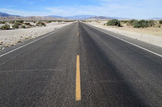 Wir wollen endlich dorthin, wo nichts mehr ist: in die richtige Wüste. Zuerst fahren wir auf vierspurigen Highways, dann auf Landstraßen, deren Fahrbahnen noch durch einen Mittelstreifen getrennt sind, dann auf schmalen, grobkörnigen Asphaltwegen, deren Belag seit sehr, sehr langer Zeit nicht mehr erneuert wurde.