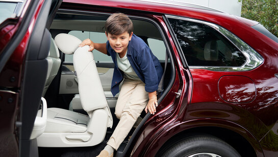 1 Die dritte Sitzreihe eignet sich laut Mazda für Personen bis zu 170 cm Körpergröße. Die Kopffreiheit wäre nicht das Problem, aber der Abstand zwischen Sitzfläche und Boden ist nicht allzu groß, was stark angewinkelte Beine bedingt. © Mazda
