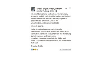 Weniger rosig hingegen die Lage bei Seat: "Für E-Autos werden viel mehr Chips und Kabel benötigt", so Wolfgang Wurm. "Es wird sich aber vieles verbessern, sobald unsere geplanten Batteriefabriken in Europa mit der Produktion beginnen." Deren Produktionsstart ist allerdings erst für 2026 geplant. Und sein Kollege Hermann Prax meint: "Wegen der weltweit hohen Nachfrage kann die Lieferzeit bei einzelnen Modellen der VW-Konzernmarken abhängig von der Konfiguration weit über ein Jahr dauern."