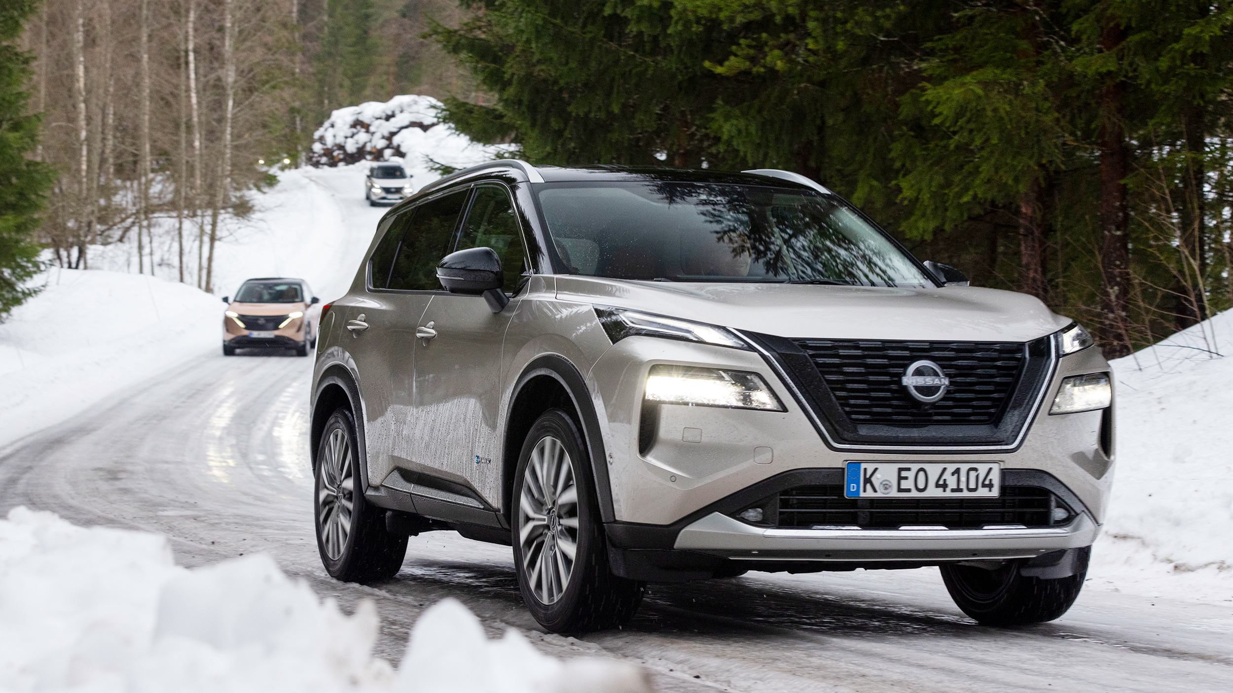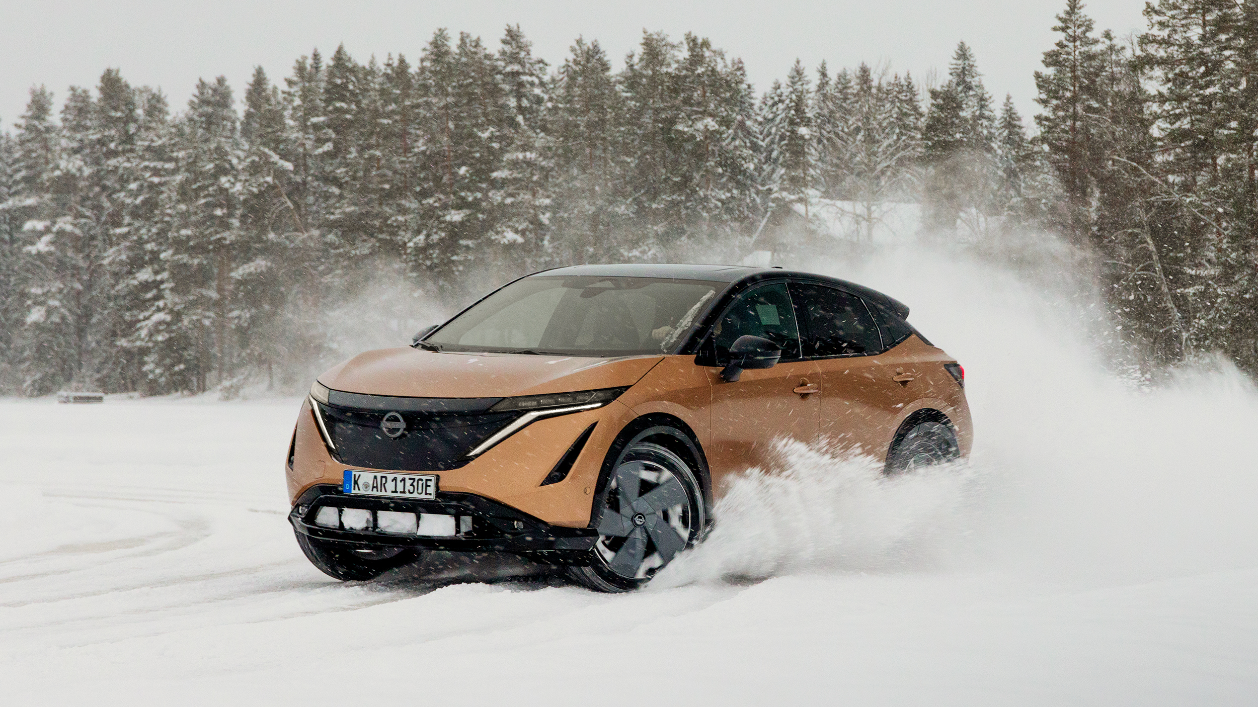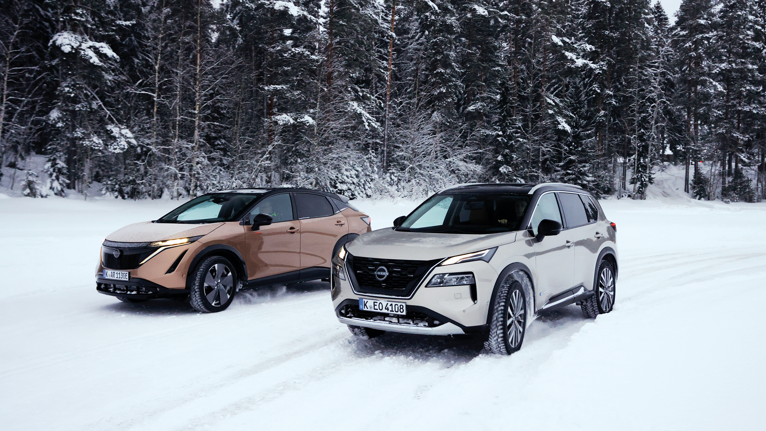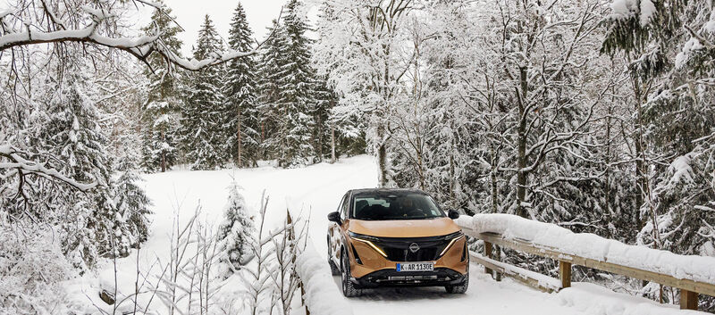 Mit einem Profi wie Laura Ylä-Lyly am Beifahrersitz fährt es sich dementsprechend gleich viel angenehmer. Mit dem Nissan X-Trail und dem vollelektrische Ariya auch, denn beide gibt es optional mit "e-4ORCE". So nennt Nissan seinen Allradantrieb, wenn dieser nicht durch eine Kupplung oder ein Differential, sondern durch einen zweiten Elektromotor an der Hinterachse verwirklicht wird.
