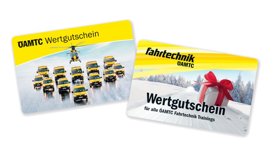 Praktisches Geschenk. Ob für Reisen, Führerschein, Kids, Rad- oder Autofans – die Gutscheinwelt des ÖAMTC bietet viele Möglichkeiten. Die Gutscheine können für Mitgliedschaft, Schutzbrief, Fahrtechnik-Training, technische Überprüfungen, im ÖAMTC-Reisebüro oder für das große Shop-Angebot (Kindersitz, Auto- und Fahrradzubehör, Trolleys u.v.m.) eingelöst werden. Einfach Gutscheinkarte mit Geschenkkuvert im ÖAMTC-Stützpunkt kaufen – oder passenden Gutschein und Motiv auf www.oeamtc.at/gutscheine auswählen und als digitalen Gutschein erwerben.