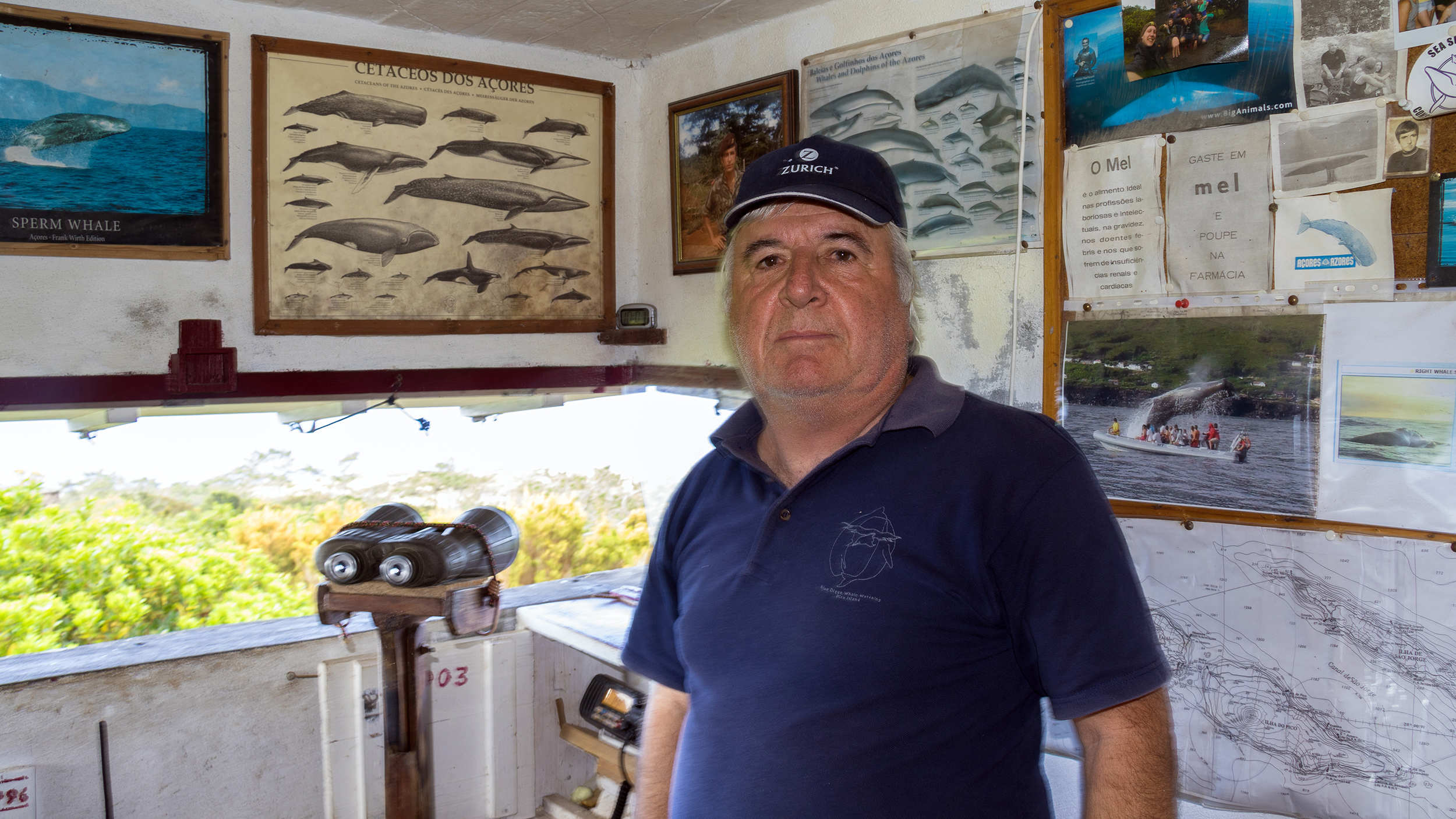 Antero war Walfänger, bis 1984 der Walfang auf den Azoren verboten wurde. Er ist irgendwie dabei geblieben, nur hat er die Harpune gegen ein extrastarkes Fernglas getauscht. Wenn das Wetter passt, ist er schon früh am Morgen da, bevor die ersten Boote auslaufen. Und am Nachmittag noch einmal.