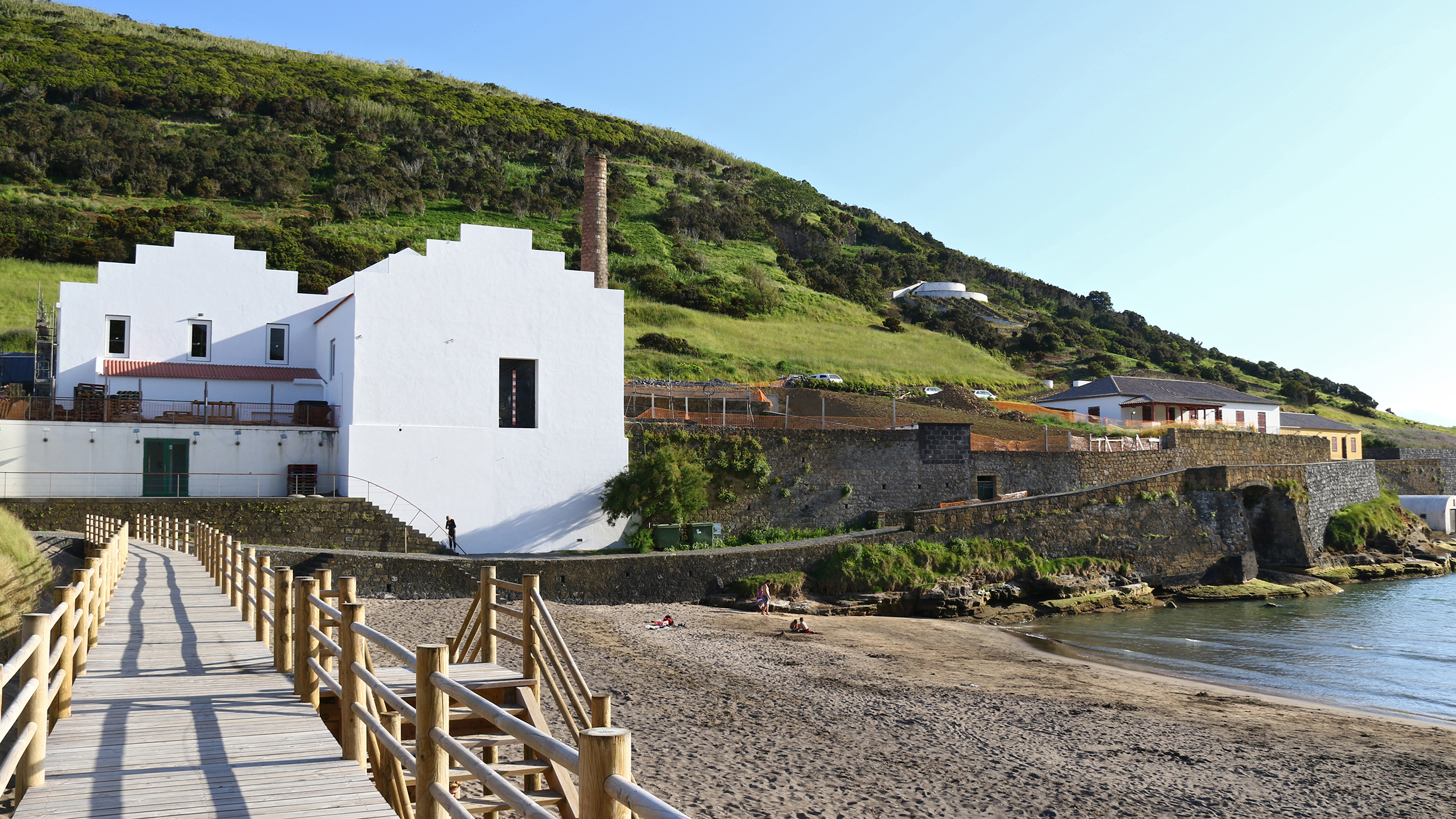 Noch besser ist es, den Abhang auf knirschendem Lavasand zu erklimmen. Auf der Sandfläche und zwischen schwarzen Felsbrocken wachsen erste karge Pflänzchen. Hier eröffnet sich der perfekte Blick auf den Vulkankegel, der allerdings schon auf ein Drittel seiner ursprüngliche Ausdehnung reduziert wurde, weil das eruptierte Material viel zu weich ist, um der Brandung des Atlantik zu widerstehen. Wer den Capelinhos selbst erwandern will, muss sich übrigens im Besucherzentrum anmelden, denn die Anzahl der Wanderer pro Tag ist begrenzt.