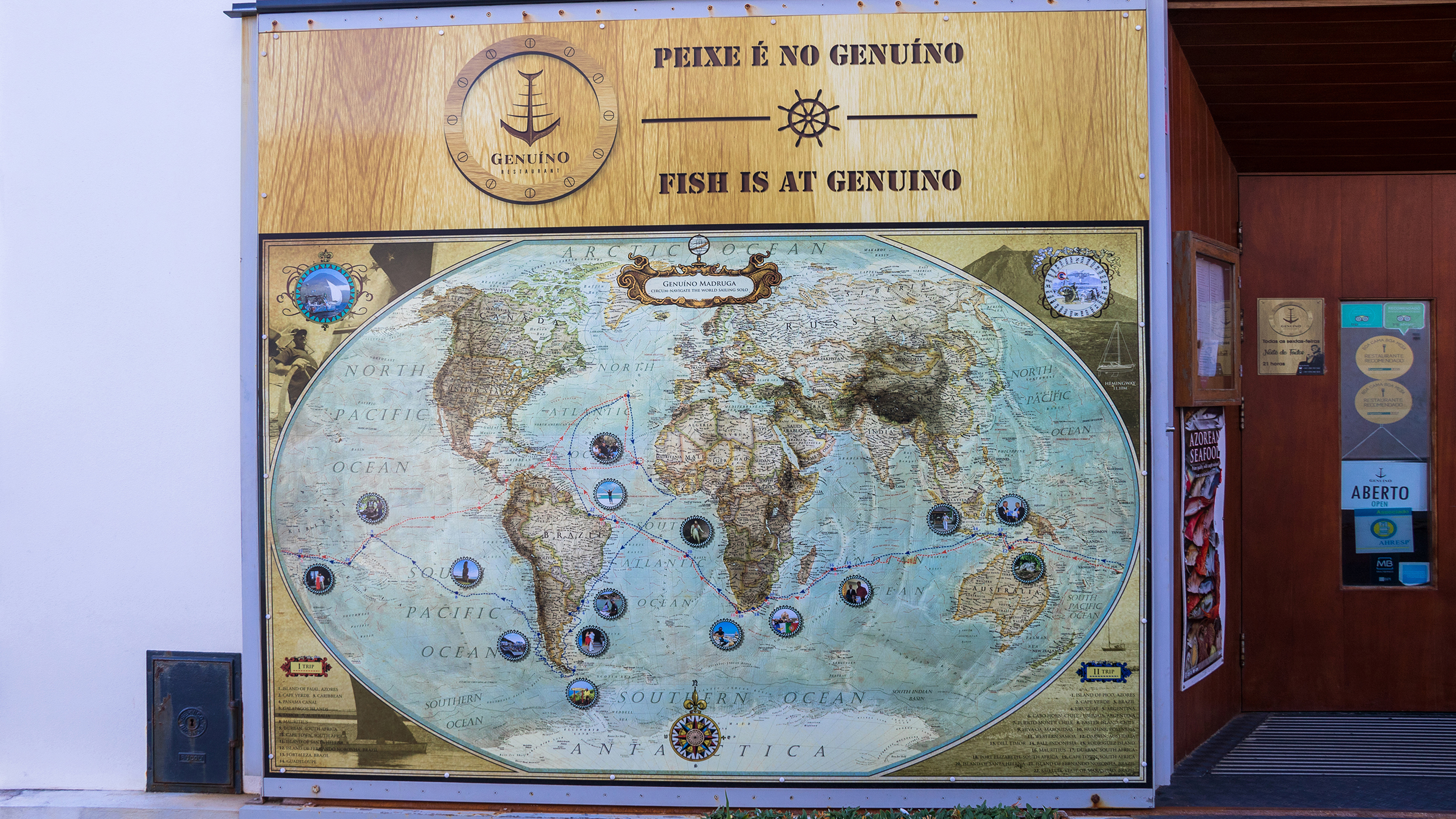 So war er von August 2007 bis Juni 2009 unterwegs, war der erste Portugiese und damals zehnter Alleinsegler weltweit, der Kap Horn in Richtung Pazifik umrundet hat. "Wie beim ersten Mal hab' ich viele interessante Menschen getroffen", sagt er mit verklärtem Blick. Und wie beim ersten Mal hat Genuino überall Mitbringsel gesammelt. Die sind nun auf den zwei Etagen seines Restaurants zu bewundern – und jeder der fragt, bekommt gerne ausführliche Antworten.