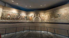 Zuerst schauen wir uns das Original-Fresko an, das vor Wind und Wetter geschützt in einem Pavillon hängt. Dann stapfen wir durch die Wiese rund um den Karner und bewundern die Szenen auf dem (1:1) nachgemachten Fresko. Ja und dann, dann scheint es, als hätten wir eine Erscheinung.