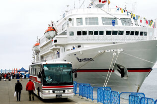 Von Tokio sind wir zwei Stunden in den Norden auf die japanische Insel Hokkaido geflogen, deren Hauptstadt Sapporo spätestens seit den Olympischen Winterspielen 1972 jedem Österreicher ein Begriff ist, weil Karl Schranz dort disqualifiziert wurde. Vom Flughafen der Millionenstadt sind es noch zwei Busstunden bis in den Hafen Otaru, wo die MS Bremen auf die Passagiere der Kreuzfahrt nach Kamtschatka und anschließend quer über den nördlichen Pazifik nach Alaska wartet.
