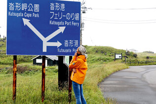07.00 Uhr. Tief hängen die Wolken über Rishiri-Fuji bzw. Oshidomari, dem kleinen Hafen von Rishiri, während wir anlegen. An der Pier werden bunte Fahnen geschwenkt. Jemand hat sich mit einem Ganzkörperkostüm als Wakami-Alge verkleidet – eine örtliche Spezialität, die Vorbild für das Maskottchen der Vulkaninsel ist. Würde die Sonne scheinen, könnte man den Vulkan in seiner fast perfekten Form bewundern, doch das spielt es heute nicht. Es heißt, er ähnle in seiner Form dem Stromboli.