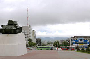 09.00 Uhr. Mit Bussen fahren wir von der Hafenstadt Korsakov nach Yuschno-Sachalinsk. In die 160.000-Einwohner-Stadt sind es ungefähr 45 Minuten. In einem Kulturzentrum werden die Passagiere traditionell mit Brot und Salz begrüßt, dann gibt es eine Folklore-Vorführung des Solovoshki-Ensembles. Weitere Stopps sind die russisch-orthodoxe Kirche, ein sehenswertes Museum, das in einem Gebäude aus japanischer Zeit (1905 bis 1945) untergebracht ist, und der Siegesplatz, auf dem ein Panzer, ein Museum und eine neue Kirche miteinander um Aufmerksamkeit konkurrieren. Es bleibt kühl und windig, aber der Regen macht zum Glück eine Pause.