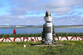 Während eines Rundgangs durch den Hauptort Nikolskoje kann man zum Beispiel das Denkmal Berings bewundern. Es zeigt allerdings das Gesicht seines Onkels, da niemand weiß, wie der Entdecker wirklich ausgesehen hat. Wir spazieren zum Haus eines Künstlers, das mit Robbenschädeln verziert ist. Vor dem Eingang dient der Beckenknochen eines Wales als Sitzgelegenheit.