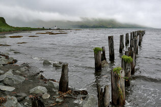 Vom sehenswerten Museum, das Geschichte und Kultur dieses abgelegenen Landstriches beleuchtet, sind es noch 2,5 Kilometer bis zur russisch-orthodoxen Kirche, die jedoch leider geschlossen ist. Man kann sich aber vor dem kleinen Friedhof auf eine Bank setzen, in die Bucht hinaus starren und über den wechselvollen Lauf der Geschichte nachsinnen, der die russischen Menschen auf diesen Inseln vor nunmehr 151 Jahren von einem Tag auf den anderen zu Amerikanern gemacht hat. Schon seltsam.
