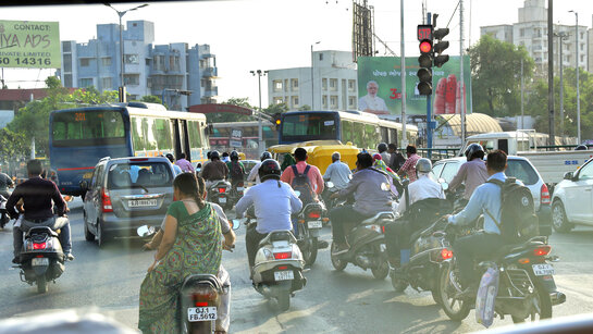 Kaum angekommen, entführt uns Umakant, unser Guide, sofort in eine fremde Welt: ins Zentrum der für Indien kleinen Provinzstadt Bhuj mit knapp 200.000 Einwohnern. Überall in den Straßen sind Kühe, so wie man sich Indien vorstellt und wie es in den Millionen-Metropolen kaum noch zu sehen ist.