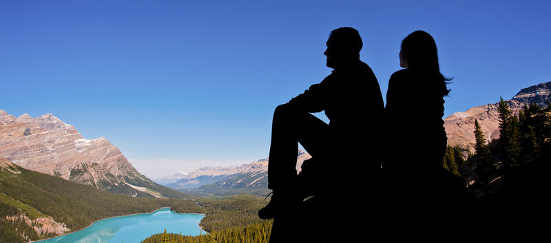 Banff ist ein gemütlicher Touristenort inmitten einer fantastischen Gebirgslandschaft. Max und ich nehmen die Seilbahn auf den Sulphur Mountain und genießen die Aussicht. In den "Rockies" sind, anders als in den Alpen, auch die Talböden von Nadelwald bedeckt, große Teile sind menschenleer. Am nächsten Tag fahren wir den Icefield Parkway hinauf, der über zwei Pässe hinüber nach Jasper führt – eine der schönsten Gebirgsstraßen der Welt, die einzigartige Aussichtspunkte berührt. Etwa jenen am Lake Louise mit atemberaubender Aussicht auf See und Victoria-Gletscher. Das vom Österreicher Gregor Resch geführte, luxuriöse Fairmont-Hotel dominiert das Seeufer. Hier ist man selten alleine, Touristengruppen aus aller Welt bevölkern das Seeufer.