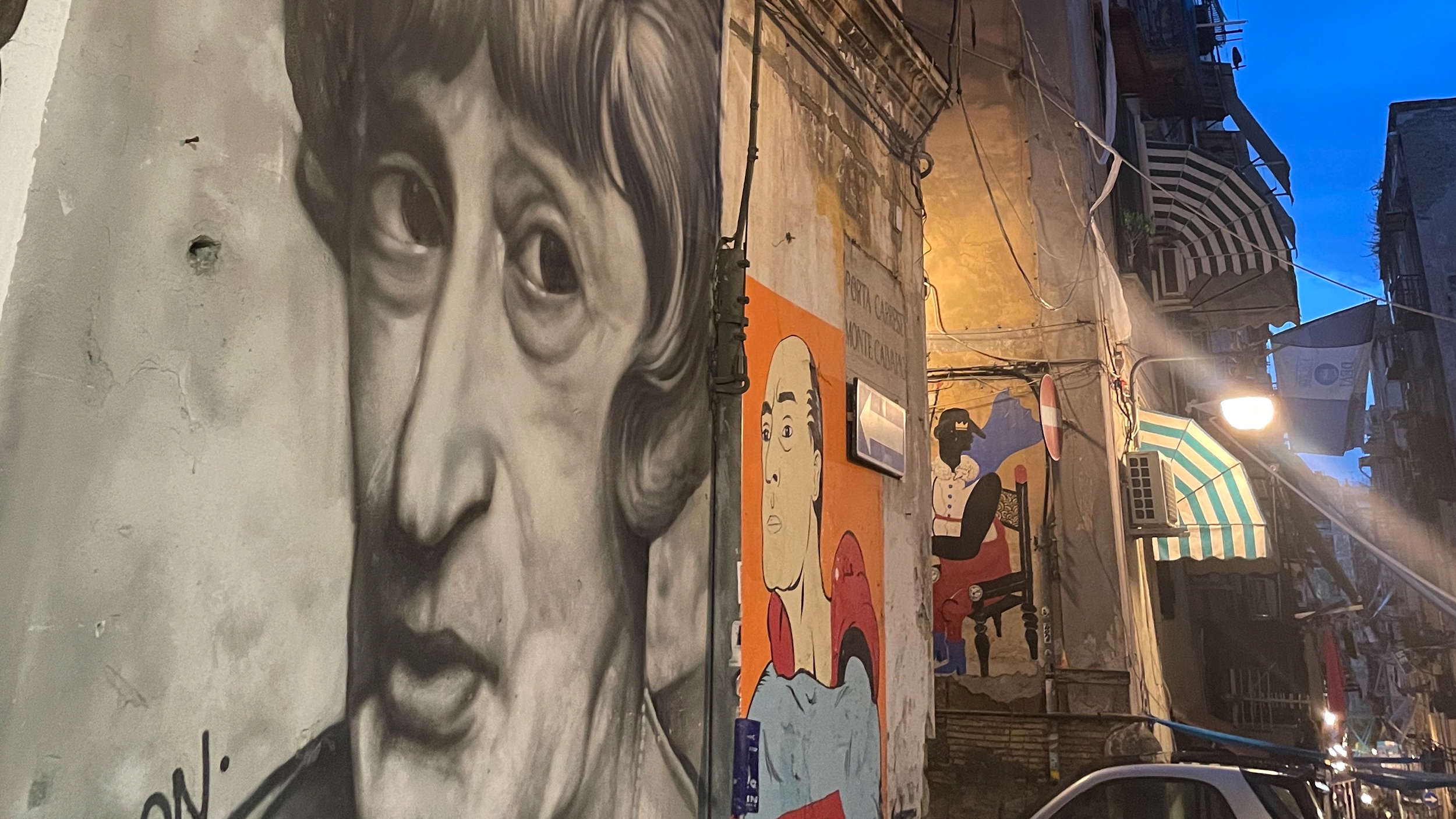 Ich trete bei der Metrostation Toledo ins Tageslicht und stehe in den schmalen Gässchen des historischen Quartieri Spagnoli. Ich bin subito, in der Sekunde, schockverliebt. Überall Menschen, lauter italienischer Singsang, expressive Mimik und Gestik. Dazwischen jagen jaulende Mopeds um die Ecken. Die Intensität ist unerträglich und berauschend. Ein sanfter Nieselregen dämpft Hitze und Lärm.