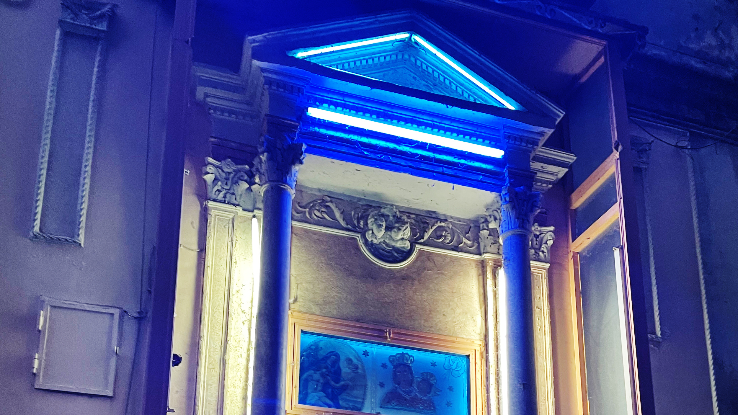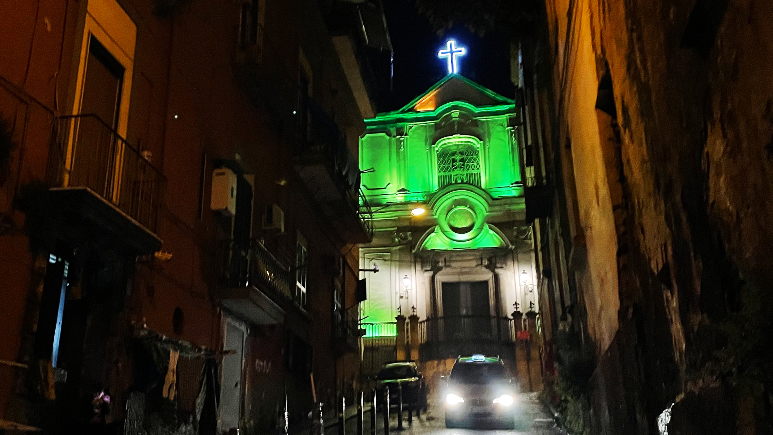 Tod, Glaube und Aberglaube sind tief in der neapolitanischen Seele verwurzelt. Unübersehbar sind die vielen "Altarini" an jeder Hausecke. Es sind Tabernakel mit Madonnen, Heiligenstatuen, Bildern Christi, mit Blumen und Rosenkränzen geschmückt, hell erleuchtet im blauen Neon- und warmen Kerzenlicht.