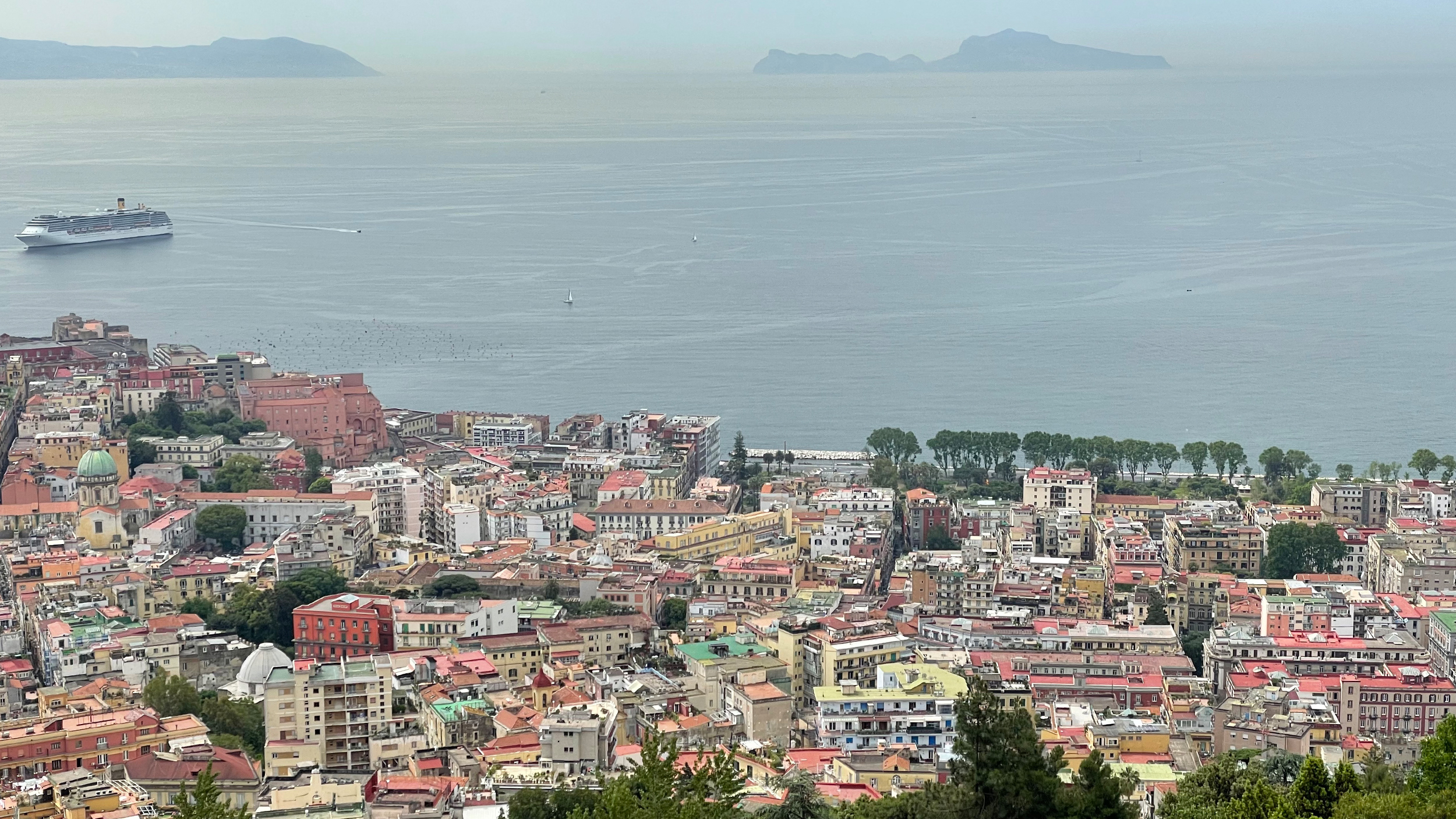 Nach 70 Minuten Zugfahrt könnte der Gegensatz nicht größer sein: Hier die Etepetete-Hauptstadt Rom, herausgeputzt in Haute Couture und strahlend wie die schönste Primadonna, dort die ungeschliffene, zerlumpte, morbide Seele Neapel. Das Auffälligste neben dem himmelblauen Meer, das die Stadt einrahmt, ist die mächtige Erscheinung im Hinterland: der Schicksalsberg.