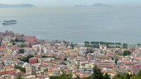 - Abwärts bietet sich eine kurze Fahrt mit der bekannten Standseilbahn an, oder man nimmt diesmal die Stiegen von Salita Petraio mit Blick auf das Meer und in der Ferne die Insel Capri. Das feinere Viertel Vomero hat nette Cafés und Restaurants und Straßen mit kleinen Boutiquen. © Birgit Schaller