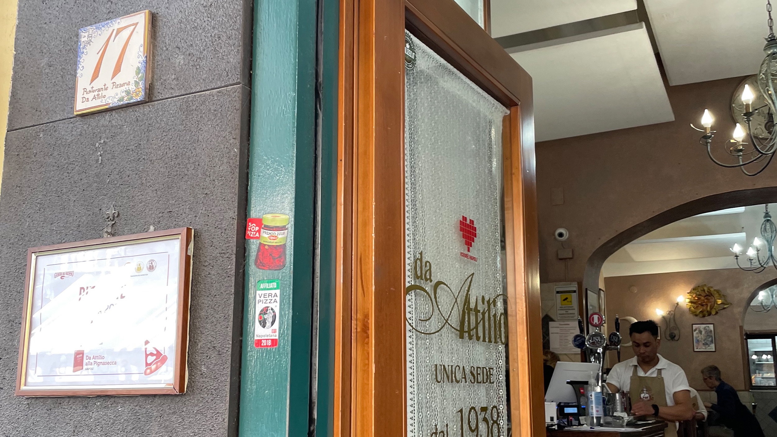 Die Italiener warten in völliger Gelassenheit bis zu zwei Stunden. "Nessun problema", gar kein Problem, beim Plaudern vergeht die Zeit. Auf der Straße duftet es nach knackiger Pizza und frischem Fisch. Drinnen vor dem Pizzaofen zaubert der Chef persönlich eine klassische Margeritha in den Nationalfarben Rot-Weiß-Grün mit Piennolo-Kirschtomaten, Büffelmozzarella und Basilikumblättchen. Alternativ die sternförmigen Attilio-Pizze probieren, die knusprigen Sternspitzen sind mit saftigem Ricotta gefüllt. Mmmh.