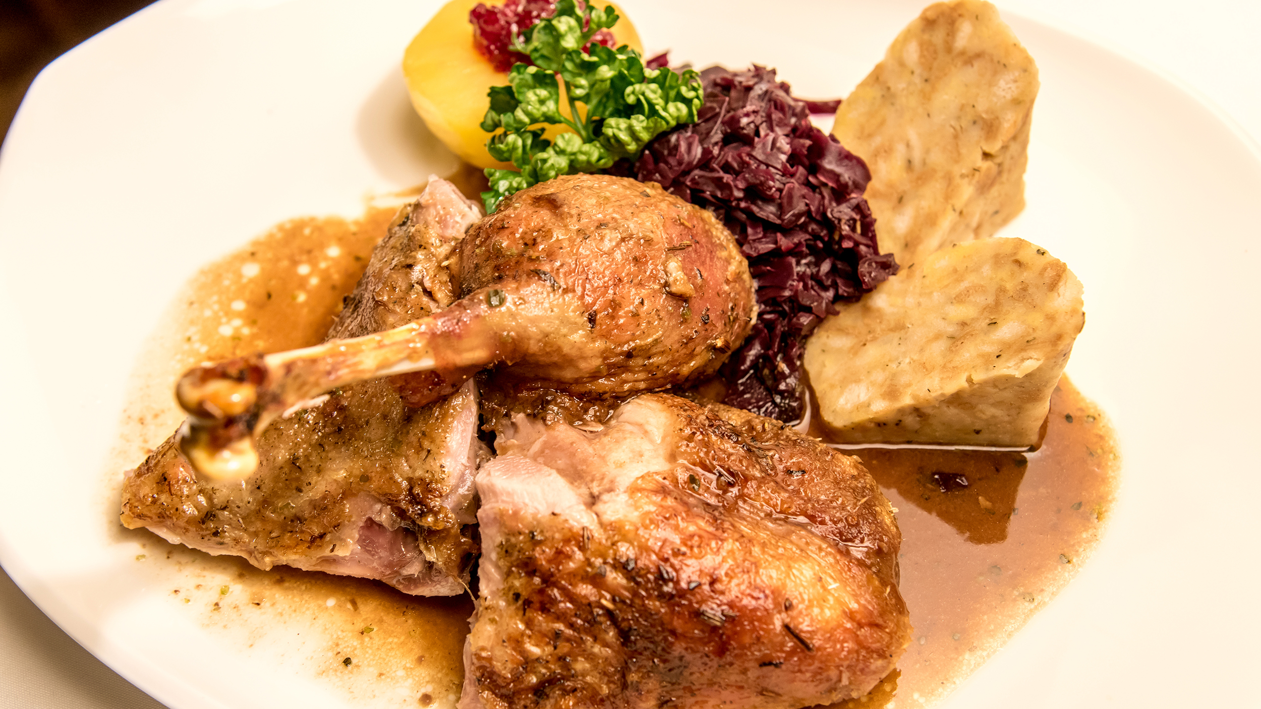 "Der Name kam erst später", erzählt Wirt Friedl Tschida, während er geräucherte Entenbrust mit schwarzen Nüssen und eingelegten roten Rüben serviert. "Der Großvater war zur Zeit der Weltwirtschaftskrise sehr großzügig. Selbst dann, wenn die Landarbeiter Schwierigkeiten mit dem Bezahlen hatten, servierte er ihnen ein Essen." Wahrscheinlich war es ein etwas einfacheres Essen als es der Enkelsohn heute anbietet: