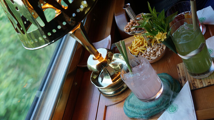 Der Barkeeper bringt zwei Cocktails, die Valentin geordert hat. "Zwei von unseren fünf neuen Signature Drinks", erklärt er stolz. Und dass Zutaten und Farbe von genau jenen Landschaften inspiriert seien, die der Zug durchfährt. Klingt ziemlich werblich, ist aber – zugegeben – gut.