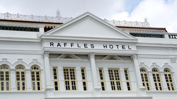 Singapur, Beach Road 1, Raffles Hotel. Gegründet vor 130 Jahren, benannt nach Thomas Stamford Raffles, dem Gründer der Stadt – und auch heute noch das erste Haus im Stadtstaat. Eine Hotel-Legende im strahlend weißen Kolonialstil, noch strahlender sogar als das Weiß des Turbans, den der davor stehende grimmig blickende indische Doorman trägt. Der trennt die Spreu der Sightseeing-Touristen von den echten Hotelgästen und mustert mich, wie ich mit meinen sieben Sachen an ihm und dem Haupteingang vorbei zu den Arkaden schreite. Denn dort sammeln sich alle, die heute mit dem Eastern & Oriental Express reisen, zum Check-in. Und zur Gepäck-Trennung: Was im Zug nicht benötigt wird, kommt in den verschlossenen Gepäckwagen, wird hier ab- und in Bangkok wieder ausgegeben. Alles andere wird einem vor der Abfahrt direkt ins Abteil gebracht.