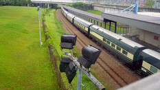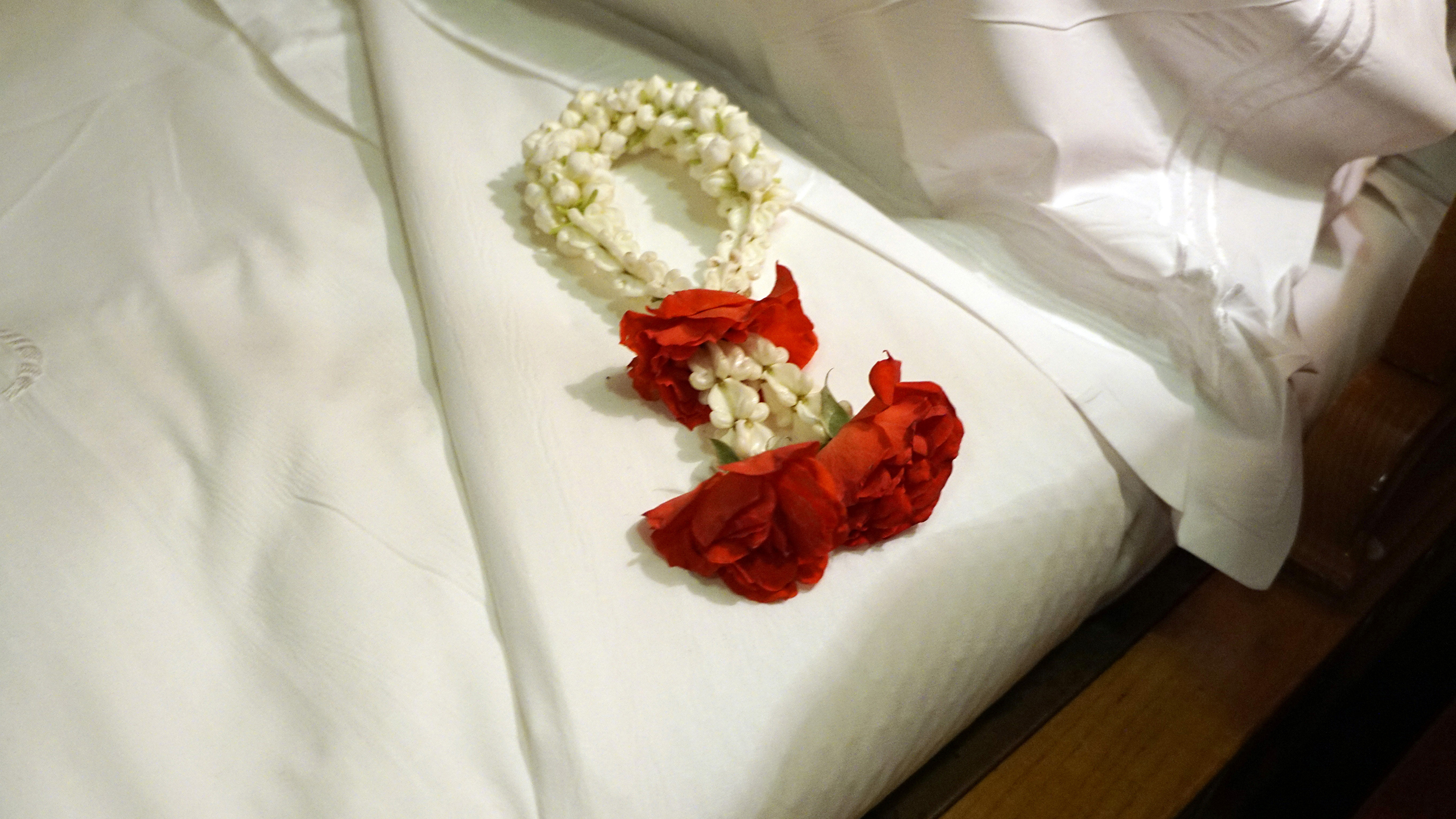 380 Meter lang ist er, und diesmal besteht er aus 17 Waggons. Zehn davon dienen uns Passagieren als rollende Hotelzimmer. Wir konnten zwischen drei Kategorien von Abteilen wählen, die alle klimatisiert sind und mit und einem einklappbaren Tisch, einer kleinen Garderobe und einem eigenem Badezimmer samt WC und Dusche ausgestattet: Pullmann heißt die günstigste, sie misst 5,8 m2 und hat eine durchgehende Sitzbank, die der Steward am Abend in zwei übereinander liegende Betten umbaut. Das State-Abteil mit 7,8 m2 hat zwei nebeneinander liegende Betten, die untertags zu Chaiselongue und Fauteuil mutieren. Und die Presidential Suite, der wahre Luxus auf 11,8 m2, bietet sogar einen eigenen Ankleideraum und Platz, zwei weitere Gäste zu empfangen. Für jeden dieser Waggons steht ein eigener Steward zur Verfügung, der nachmittags High Tea – also eine Kanne Tee und süße Naschereien – ins Abteil serviert und während des Abendessens die Betten bereitet. Meiner heißt Nadthanan. Er empfängt mich vor meinem Waggon und bringt mich in mein wohltemperiertes Abteil.