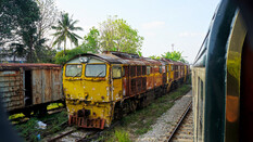 Das Rumpeln hat ein Ende gefunden, die Schienen machen einen neuen, frisch verlegten Eindruck. Wir haben die Peripherie Bangkoks erreicht. Der Zug bahnt sich seinen Weg durch den Rand der Mega-Metropole. Dicht vorbei an ärmlichen Baracken, Wäscheleinen, illegalen Müllhalden. Hindurch unter wild verlegten Stromkabeln und Fragmenten von scheinbar funktionslos in der Landschaft stehenden Betonbrücken. Wir passieren Kinder, die gleich hinter dem Zug das Gleis als Spielplatz okkupieren, Männer, die in unserem Fahrtwind Nähmaschinen reparieren, dahinrostende ausrangierte Loks und händisch betriebene Bahnübergänge: Nähert sich der Zug, rollen sie ein großes Gitter über die Straße, ist der Zug vorbei, schieben sie es weg und die Hundertschaft an wartenden knatternden Mopeds hat wieder freie Fahrt.