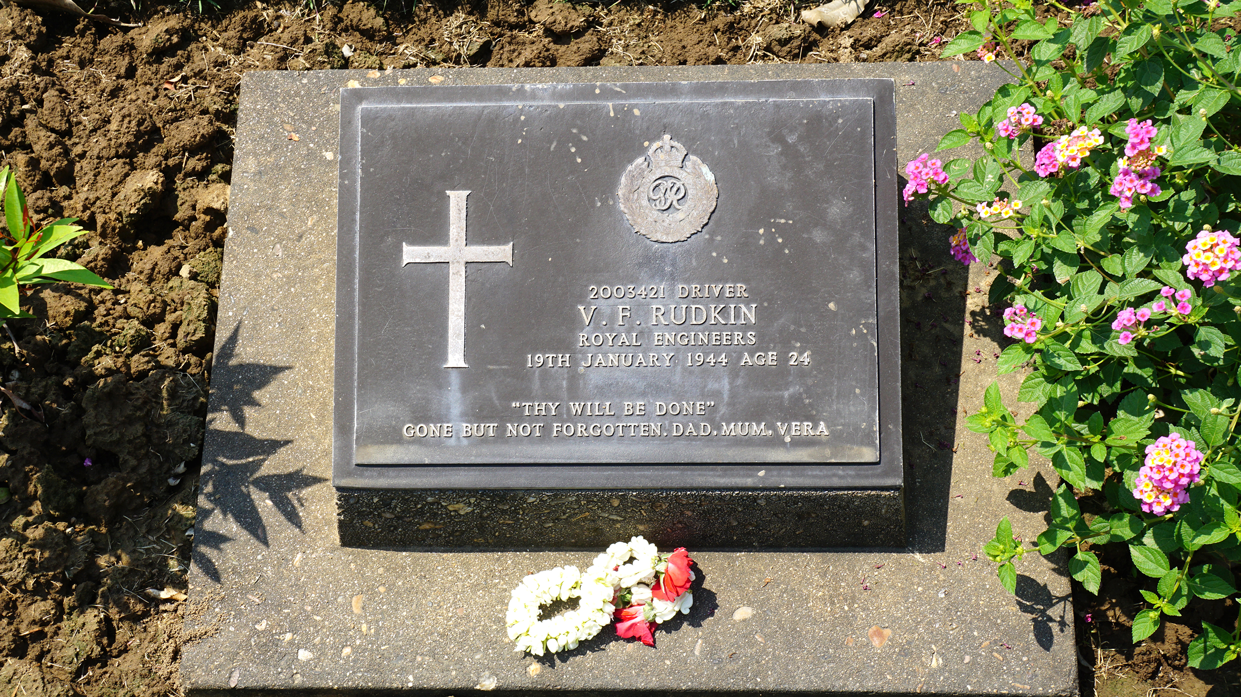 Am Abend zuvor fanden alle Zugspassagiere, als sie vom Abendessen in ihre Abteile zurückkehrten, eine Puang Malai, die traditionelle Glückskette aus weißen Blütenblättern, auf ihren Betten. Mit der Bitte, sie auf eine der kleinen Grabplatten zu legen. Ich erweise Victor F. Rudkin, einem Fahrer des Corps of Royal Engineers der Britischen Armee, meine Ehre. Er musste am 19. Jänner 1944 im Alter von 24 Jahren sein Leben lassen.