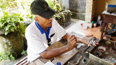 - Das Dorf der Handwerker - Der südlich von Ubud gelegene Ort Mas ("Gold") gilt als Zentrum der Gold- und Silberschmiedekunst Balis. In vielen betrieben lassen sich die Handwerker bei der Arbeit auf die Finger schauen. © Kurt Zeillinger