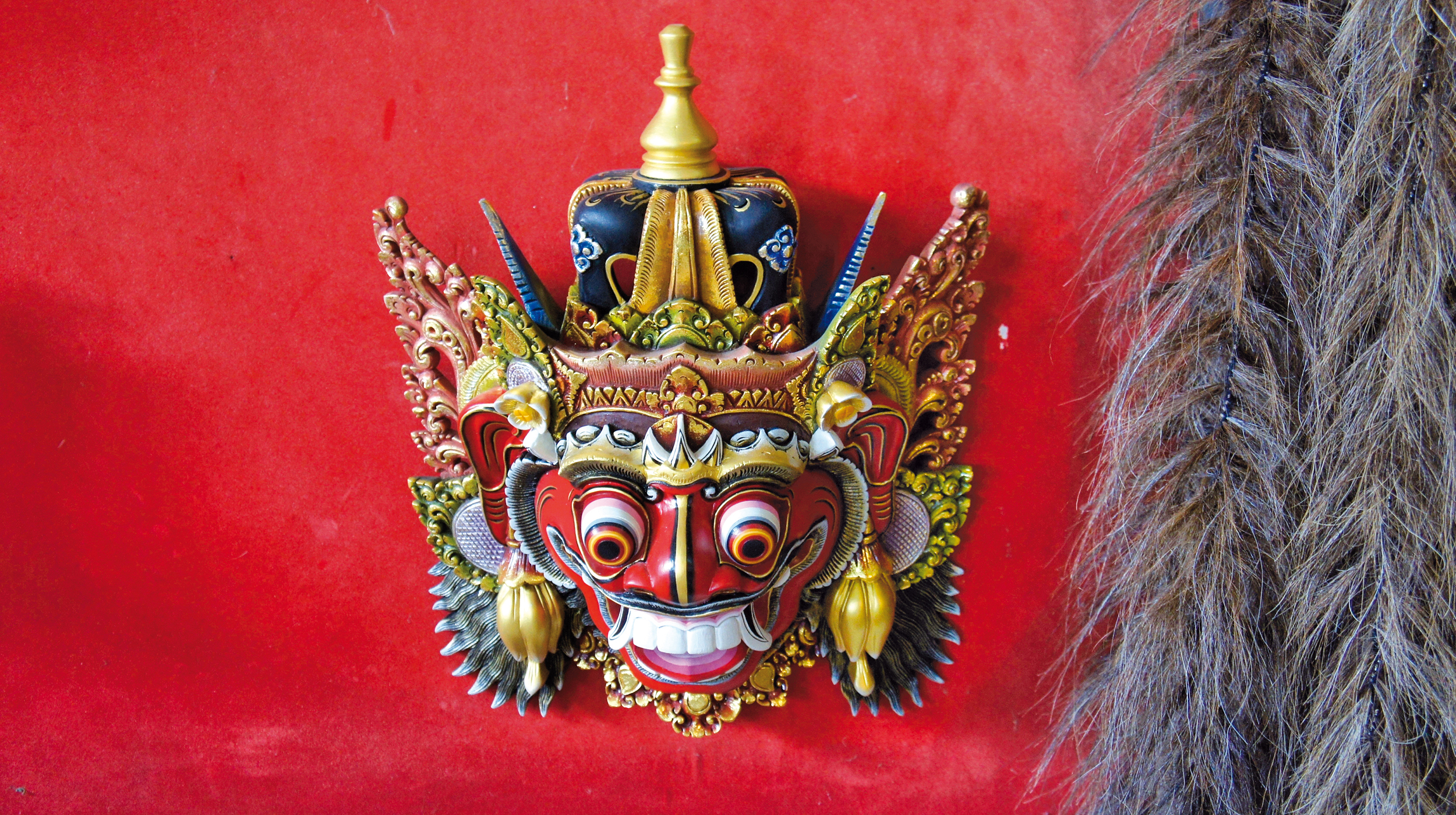 - Dämon aus Holz - Auch Holz verarbeitende Handwerksbetriebe laden in Mas zur Besichtigung ein. Sie erzeugen Möbel und Skulpturen wie diese Maske des Dämons Barong. © Kurt Zeillinger