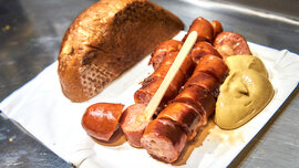 A Eitrige mit an G'schissenen, an Buggl, an Krokodü und an Sechzehna-Blech dazua" Sie kennen den Sager, der angeblich allen Auswärtigen in lautmalerischer Weise veranschaulichen soll, wie in Wien beim Würstelstand das Standardmenü bestellt wird? Nein? Nun, mit diesen charmant gewählten Worten wird eine Käsekrainer, dazu ein süßer Senf, das Endstück eines Brotes, ein Essiggurkerl sowie eine Dose Bier (die Brauerei ist im 16. Wiener Gemeindebezirk angesiedelt) geordert. Heißt es.