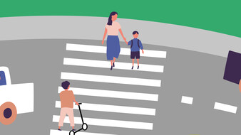 Ein kleiner Werkzeugkasten mit Tipps hilft Ihrem Sprössling dabei: Den Zebrastreifen mittig überqueren. Mit den Fahrer:innen Blickkontakt aufnehmen. Auf die Räder des Autos schauen: Rollen sie noch oder steht das Auto bereits? Erst dann die Fahrbahn überqueren. Hat mich der Autofahrer auch wirklich gesehen?