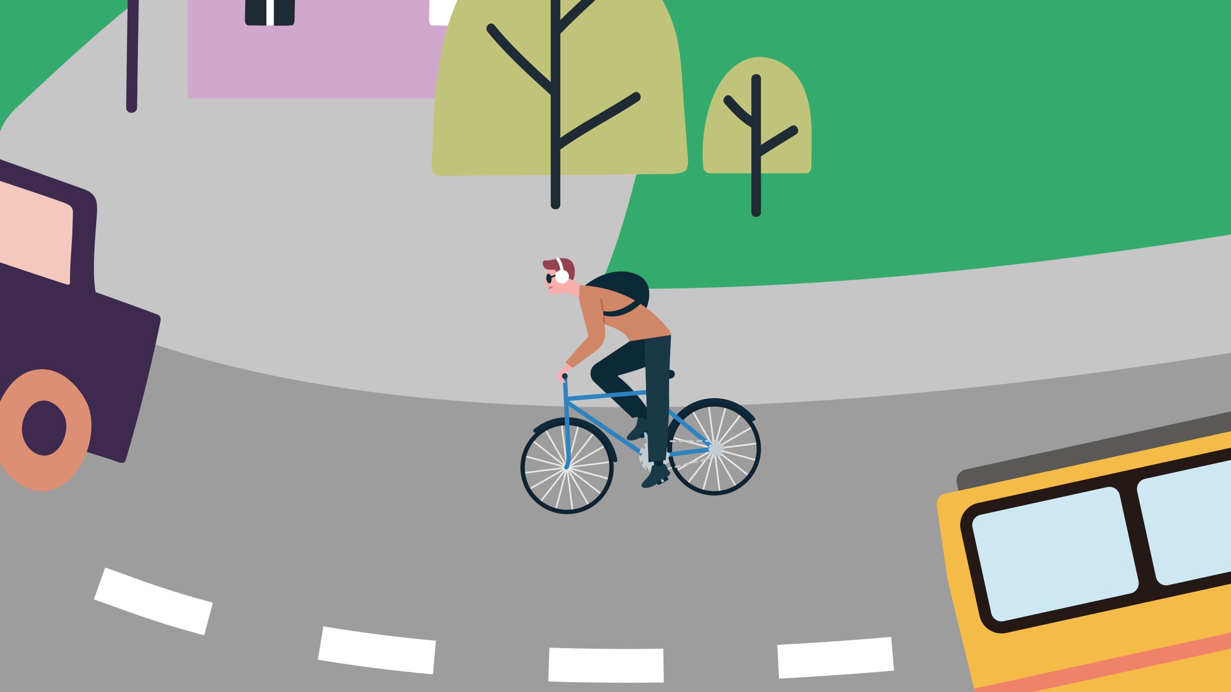 Jugendliche, die bereits mit dem Fahrrad in die Schule fahren, sollten sich nicht ihre Ohren mit Kopfhörern zustöpseln. Auch wenn es keine ausdrückliche Rechtsvorschrift gibt, die das Musikhören mit Kopfhörern beim Radfahren verbietet, müssen auch sie ihre Umgebung akustisch wahrnehmen können.
