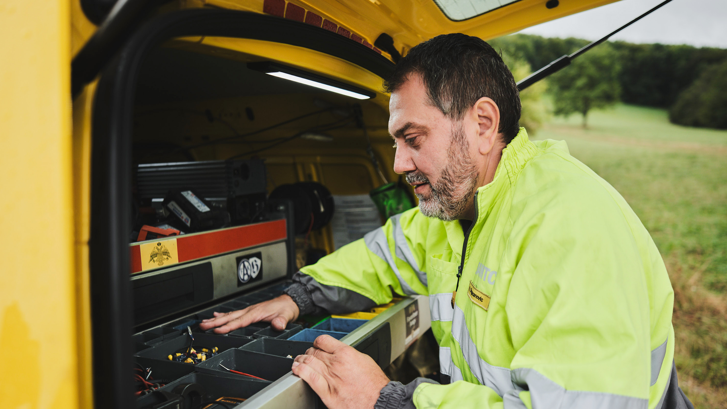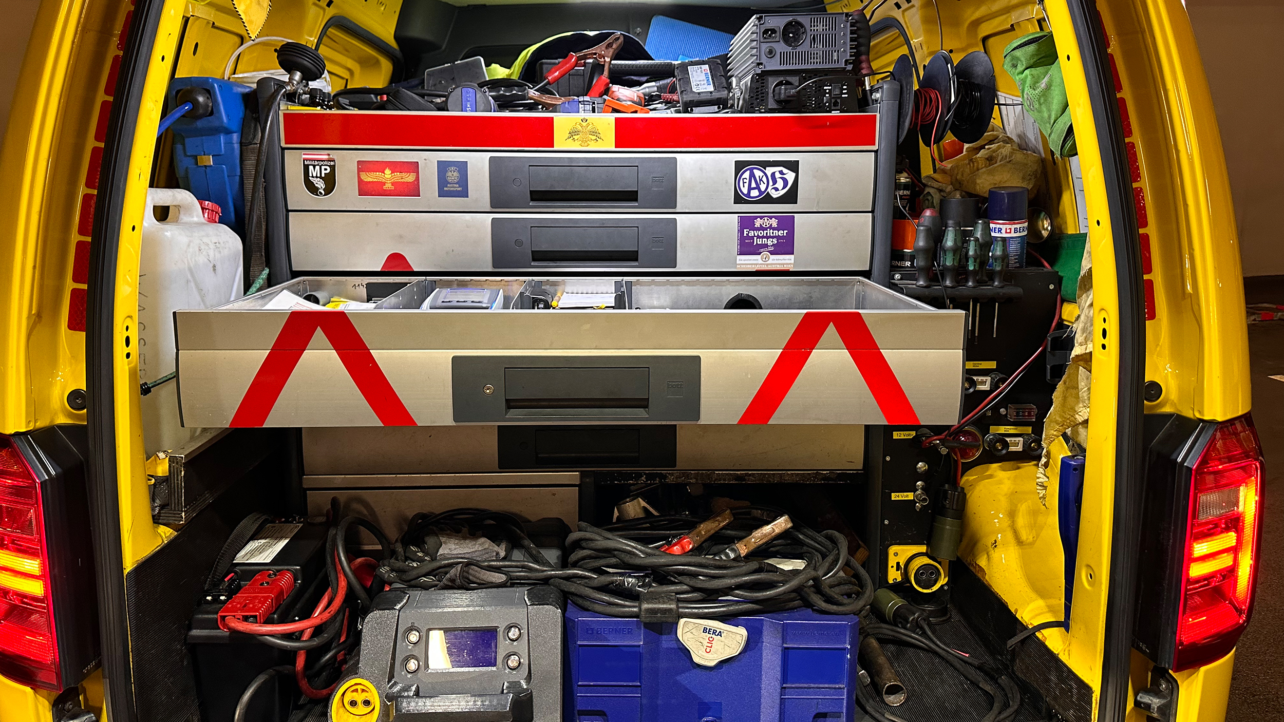 Tags darauf am ÖAMTC-Stützpunkt Brunn am Gebirge in Niederösterreich. Auch hier beginnt der Arbeitstag für Dragan mit Kaffee. "Ich mag es, früher in der Arbeit zu sein, dann kann ich alles in Ruhe vorbereiten und mich um Punkt 8 Uhr gut vorbereitet einloggen." Er kontrolliert sein Pannenauto, füllt Bestände auf, entsorgt Autobatterien vom Vortag, fährt das System hoch.