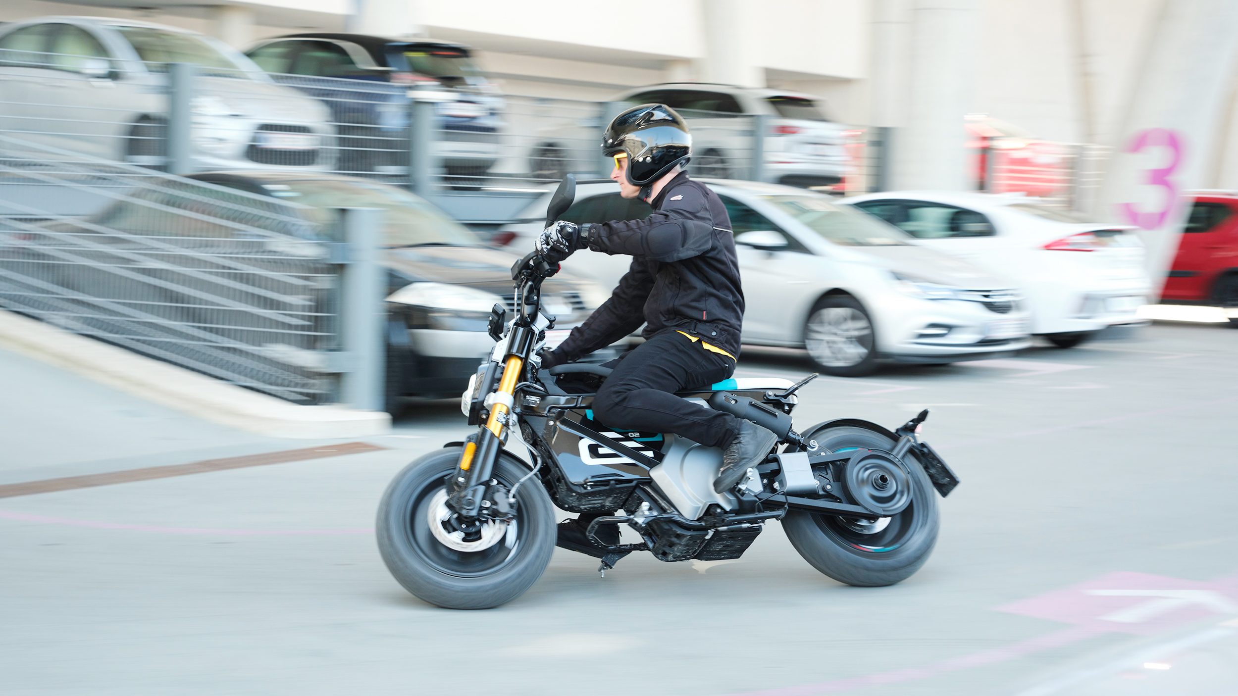 Die Verwandtschaft mit anderen Auto- und Motorradmodellen von BMW ist unübersehbar, speziell wenn es um die grafischen Anzeigen sowie das Instrumentarium zur Bedienung geht. Schon nach wenigen Metern wird rasch klar, dass es in puncto Handling und Fahrverhalten keinerlei Beanstandungen gibt. Ganz im Gegenteil: Der CE 02 beschleunigt durchaus zügig, die vorgegebene Höchstgeschwindigkeit von 45 km/h ist rasch erreicht.