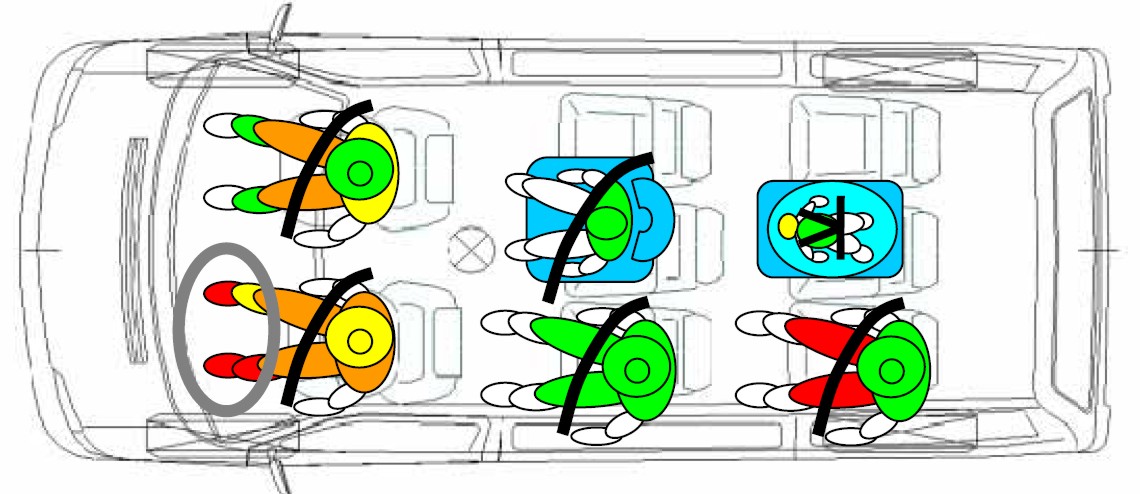 Beide Hersteller haben die schweren Testsanforderungen (Frontalaufprall gegen gleich großes und gleich schweres Fahrzeug) erfolgreich absolviert. Es gab in beiden Fahrzeugen keine hohe Gesamtverletzungsschwere für die Frontinsassen. Das Verletzungsniveau der Insassen hinten ist, bis auf die hohen Kniebelastungen niedrig. Die Knieverletzungen treten bei beiden Fahrzeugen deshalb auf, weil sich der Insasse auf der letzten Sitzreihe an den Metallverstrebungen der Vordersitzbank schwer verletzt. Das wichtigste Ergebnis ist jedoch die niedrige Verletzungsgefahr für Kinder, weil diese Fahrzeuge häufig als Schuloder Kindergartenbusse eingesetzt werden.
