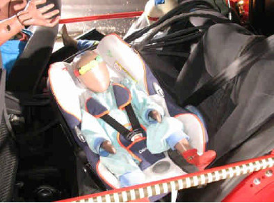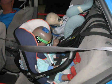Die Belastungen des Kindes in der falsch gesicherten Babyschale sind im Bereich Kopf, Nacken und Brust doppelt so hoch und überschreiten sogar biomechanische grenzwerte. Das Risiko des Herausschleuderns des Kindes aus dem Fahrzeug stellt zu dem noch extra ein extrem hohes Verletzungsrisiko dar.