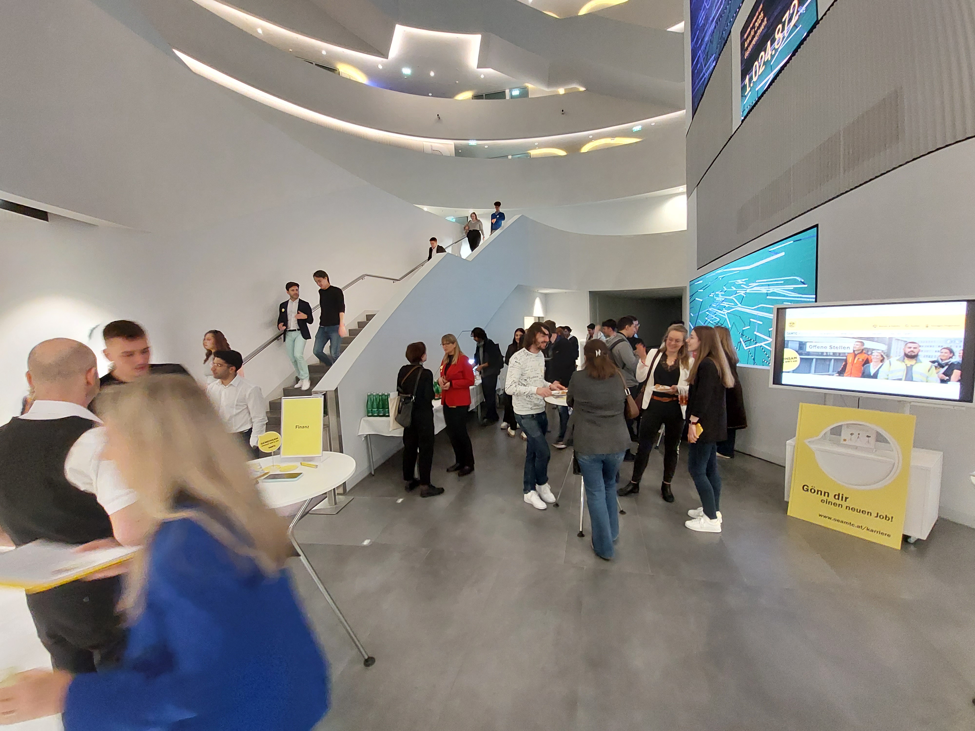 75 Minuten haben wir bei unserem „Site-Visit“ Zeit, um den ÖAMTC als Arbeitgeber und unsere Arbeitswelt zu präsentieren. Nach einem Rundgang durchs Haus werden wieder Kolleg:innen aus unterschiedlichen Fachbereichen wie Technologie, Rechtsberatung oder Finanz- und Rechnungswesen über Karrierewege und Jobs beim ÖAMTC erzählen und Einblicke in ihre Arbeit geben.