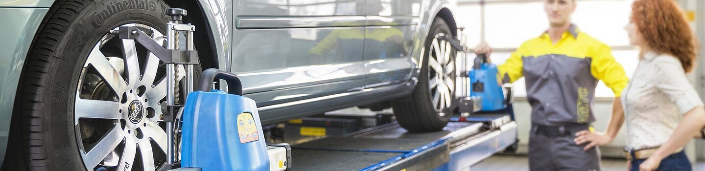 Überprüfung und Vermessung des kompletten Fahrgestells - auch als Achsvermessung oder Spurvermessung bekannt. Damit Sie auch wirklich sicher, reifenschonend und ökonomisch unterwegs sind.