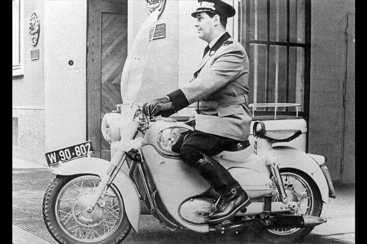 1959 tritt der Puch 500 seinen Dienst als Pannenfahrzeug an. 61 Fahrzeuge nehmen ihren Dienst auf und lösen damit die Beiwagenmaschine ab.