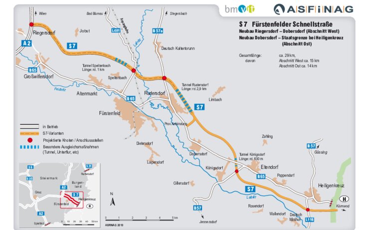 Mit einer durch die Corona-Pandemie verursachten Verzögerung kann jetzt aber auch der zweite Teil der S 7 gestartet werden. Insgesamt beträgt die Investition für diesen Abschnitt etwa 210 Millionen Euro. Die fast 14 Kilometer bis zur Staatsgrenze sind in vier einzelne Abschnitte aufgeteilt.