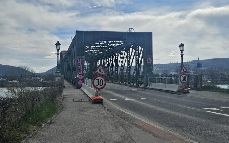 Grund ist ein Gutachten nach der halbjährlichen Überprüfung durch ein Ziviltechnikbüro, bei dem deutliche Schäden an wesentlichen Bauteilen, insbesondere durch fortgeschrittene Korrosion und Materialverluste, festgestellt wurden. Aus statischen Gründen sei es erforderlich, die Fahrbahnbreite des rund 130 Jahre alten Konstrukts von 5,44 Metern auf rund 3,75 Meter zu reduzieren.