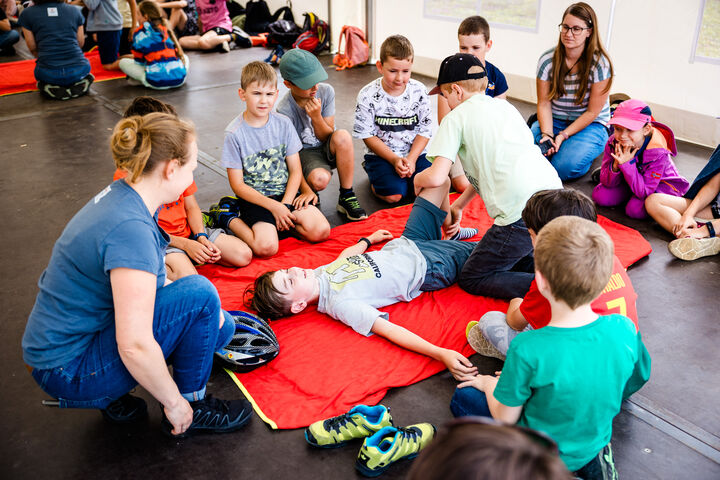 Die Schülerinnen und Schüler lernten auch Maßnahmen in Erster Hilfe: Was tun, wenn beim Radfahren jemand stürzt? Wie nehme ich den Helm richtig ab und wie funktioniert die stabile Seitenlage? Das Jugendrotkreuz Wels demonstrierte, wie man Hilfe holt und rasch und richtig handelt. „Richtiges Verhalten im Straßenverkehr rettet Leben. Es liegt uns am Herzen, junge Menschen dafür zu sensibilisieren und sie im Erwerben von Lebenskompetenzen zu unterstützen“, sagt Karin Turner vom Jugendrotkreuz Oberösterreich. Johann Pluy, Vorstandsmitglied der ÖBB-Infrastruktur AG, ergänzt: „Das Thema Verkehrssicherheit, das heißt Sicherheit auf unseren Bahnanlagen und insbesondere bei Eisenbahnkreuzungen, ist uns sehr wichtig. Mit Aufklärung und Bewusstseinsbildung möchten wir Jugendliche erreichen, damit sie sich und andere nicht durch unvorsichtiges Verhalten in Gefahr begeben. Diese Veranstaltung ist eine ideale Plattform, um mit vielen Schülerinnen und Schülern in direkten Kontakt zu treten und sie für das richtige Verhalten zu sensibilisieren.“