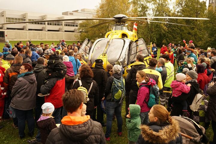 „Er landet, er landet, er landet“ – kaum hatte Moderatorin Kathi Hellmayr angekündigt, dass der Rettungshubschrauber in wenigen Minuten am benachbarten Grundstück der ÖAMTC Landeszentrale landen würde, stieg die Vorfreude sowohl bei den kleinen als auch bei den großen Besuchern des „Helfer erleben“-Aktionstages rasant an. Wann gibt es schließlichschon die Gelegenheit, mit der Crew ein Selfie zu machen oder den Hubschrauber von innen zu betrachten. „Es ist toll, dass so viele Familien trotz des nicht so schönen Wetters zu uns gekommen sind. Wir wünschen Ihnen einen interessanten und spektakulären Tag“, freute sich ÖAMTC Präsident Karl Pramendorfer in seiner Begrüßungsrede.