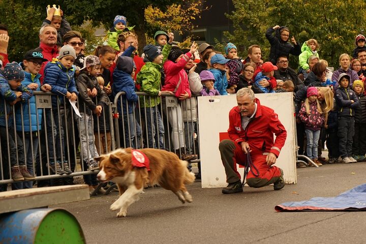 Aber nicht nur die Landung des Christophorus 10 sorgte für große Augen und Staunen: „Wir haben uns gerade die spektakuläre Vorführung der Rotkreuz-Suchhundestaffel angeschaut, nun müssen wir natürlich hautnah beim „Verkehrsunfall“ dabei sein und im Anschluss wollen wir auch noch die Hunde der Polizei erleben. Abseilen, Kaspertheater, Hüpfburg und die Inspektion eines Feuerwehrautos haben wir schon erledigt“, berichtet eine Mutter, die sich gemeinsam mit ihren beiden Kindern – geschminkt als Schmetterling und Löwe – den Aktionstag nicht entgehen ließen.