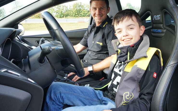 Der 13-jährige Leonard hatte einen ganz großen Wunsch: Einmal am Beifahrersitz in einem Rallye-Boliden Platz nehmen! Patrick Winter ist im Fahrtechnikzentrum Marchtrenk leitender PKW-Instruktor und ehemaliger Rallye-Fahrer. Er erfüllte dem jungen Mann seinen Wunsch. Nach einer kurzen Einweisung ging es auch schon auf die Strecke. Patrick ließ die Reifen quietschen, sauste über das Areal, baute Turns und Donuts ein. Dem Grinsen von Leonard nach zu urteilen, konnte es dem jungen Co-Piloten gar nicht wild und schnell genug sein. Noch nie hatte Patrick Winter so einen mutigen Beifahrer. „Der Besuch von Leonard hat uns wirklich eine große Freude bereitet. Wir wünschen ihm und seinen Eltern alles Gute. Danke für diese großartige Möglichkeit“, so der Leiter des ÖAMTC-Fahrtechnikzentrums Andreas Rouschal.