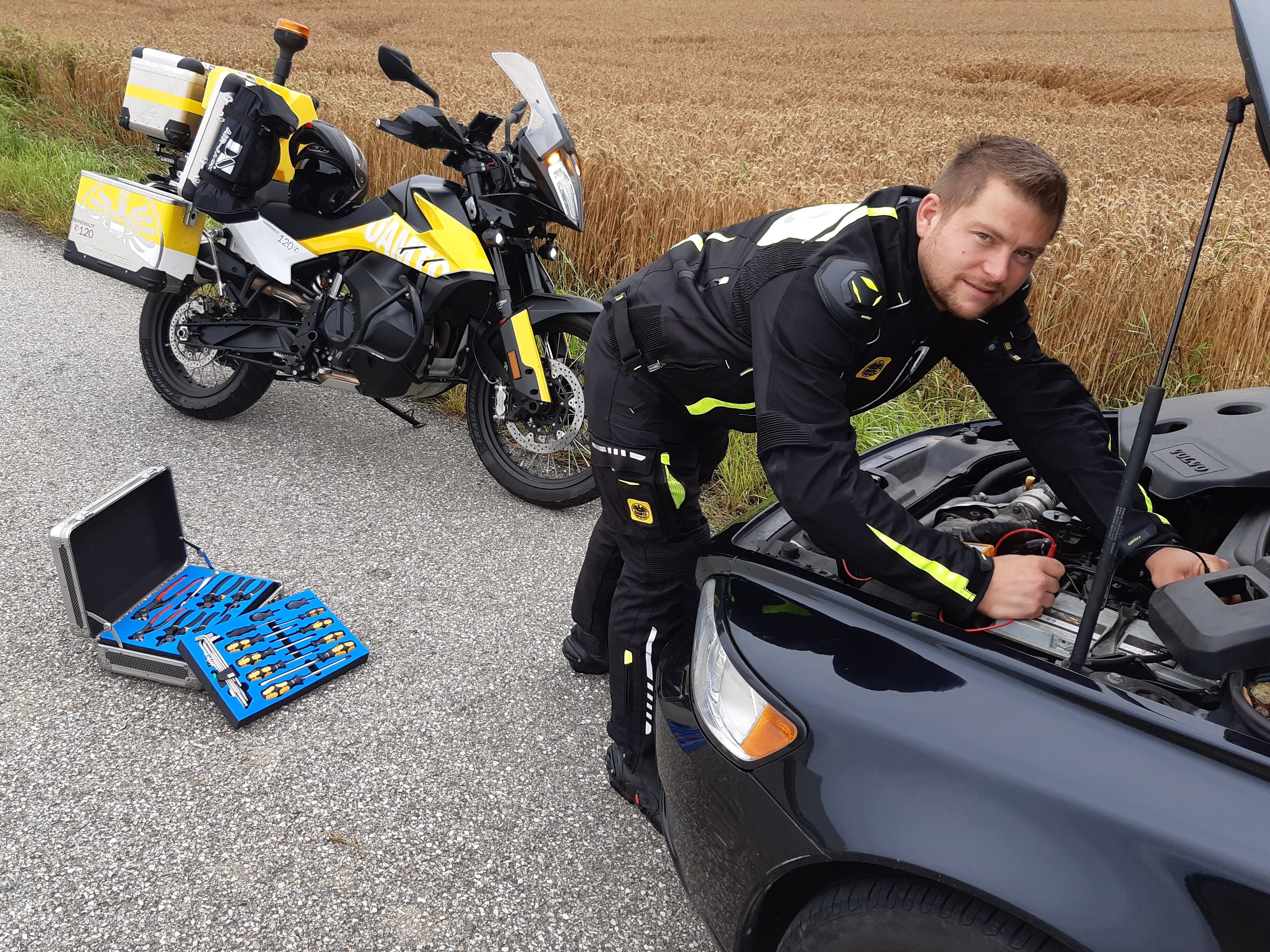 Für die Pannenhelfer sind Einsätze an Badetagen oft ein Hindernislauf. Die Zufahrten sind meistens verstopft und starker Verkehr sorgt vielfach für Stau. Um die Wartezeiten für betroffene Mitglieder kurz zu halten. Das neue Pannenhilfe Motorrad ist seit wenigen Wochen im Einsatz und ideal geeignet, um auf den oft überfüllten Parkplätzen rund um die Seen überhaupt zum defekten Fahrzeug zu gelangen. Aber auch zu Pannenhilfen auf den Autobahnen wird wohl häufig ausgerückt werden: „Das Motorrad ist ausgestattet mit einer Pannenhilfe-Ausrüstung samt Starthilfe-Anlage. Bei Schönwetter werden wir wohl den ganzen Tag mit der Maschine unterwegs sein“, sagt Ploberger.