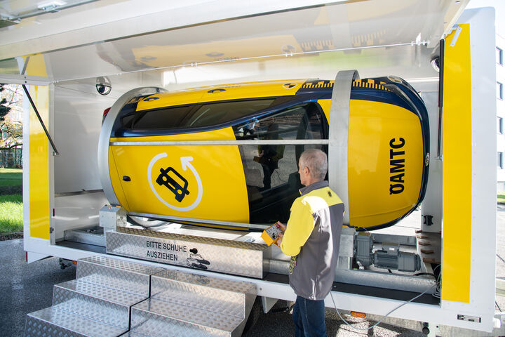 Unter fachkundiger Anleitung einer ÖAMTC Mitarbeiterin oder eines ÖAMTC Mitarbeiters wird Schritt für Schritt geübt, wie man sich abschnallt und aus dem Fahrzeug steigt, wenn man kopfüber im Gurt hängt. Der Simulator bietet Platz für bis zu vier Personen gleichzeitig. Auf Wunsch kann zusätzlich eine Airbag-Zündung simuliert werden, um das Geschehen noch realistischer darzustellen.