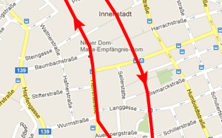 Auf den Straßenbahnlinien 1, 2, 3 und 4 sowie den Buslinien 12, 17, 19, 26, 27, 45 und 46 kann es in den Bereichen Taubenmarkt, Mozartkreuzung und Goethekreuzung zu kurzen Anhaltungen kommen.